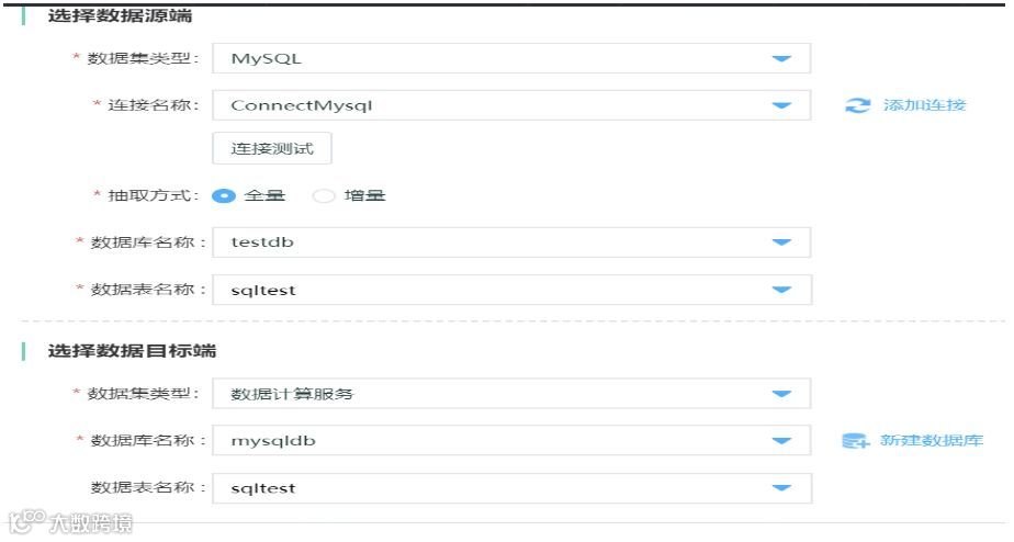 下面会演示以MySQL数据库为例,如何利用数据工厂进行数据采集,以及如何利用数据工厂作为DTS在两个数据源之间进行数据迁移。