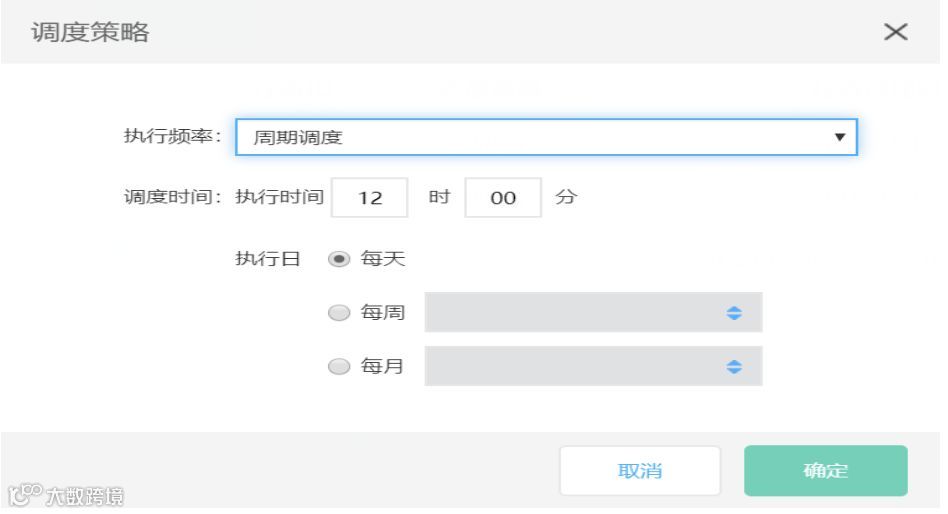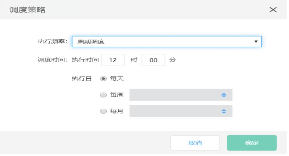 调度策略可以选择手工执行、周期调度和单次运行三种模式,也可以直接选择单次运行。
