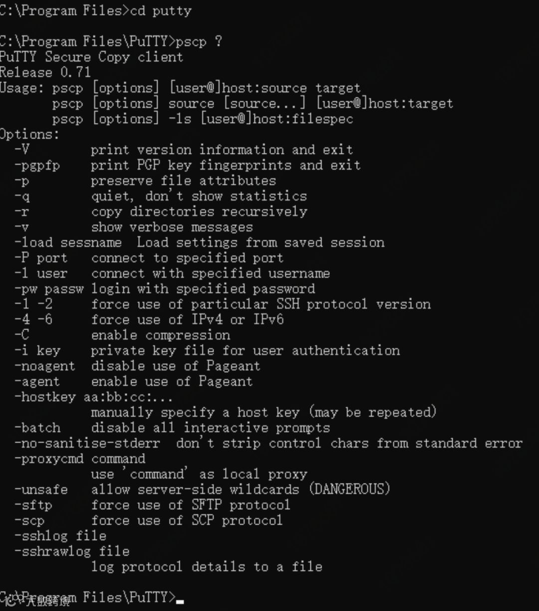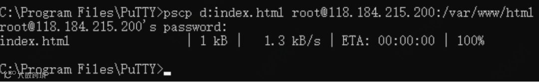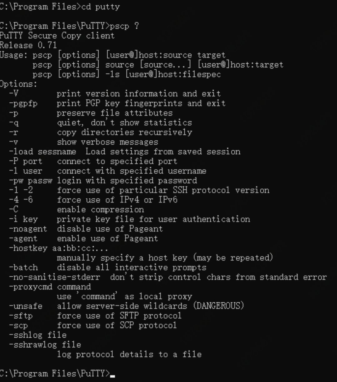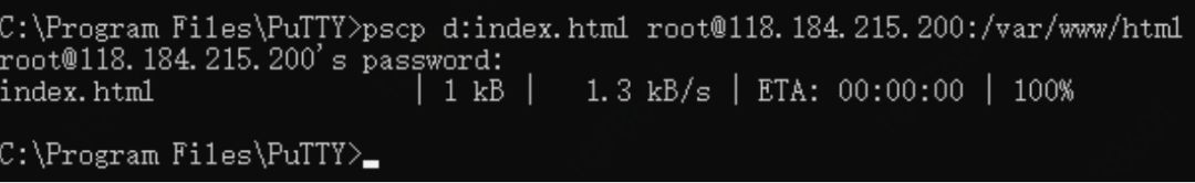 把本地文件上传到LINUX服务器的目录中。命令格式:pscp 文件 用户名@LINUXIP:目录