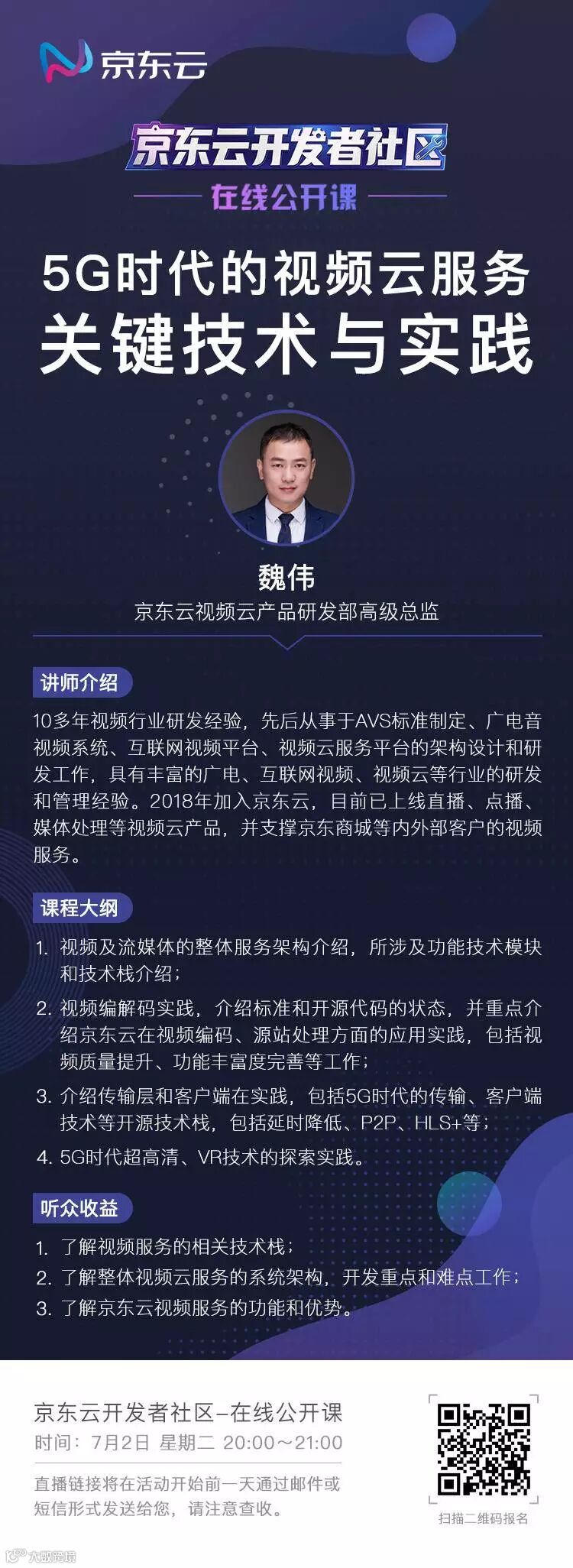 京东云视频质量提升、功能丰富度完善、降低延时等方面的具体实践是怎样的?7月2日晚上(周二),京东云视频云产品研发部高级总监魏伟,通过「在线直播」的形式跟开发者聊聊视频和流媒体的关键技术。