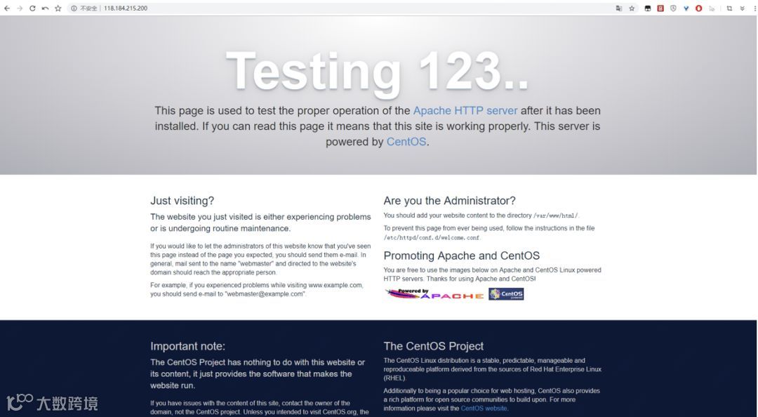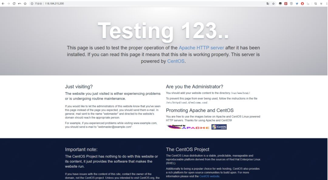 打开浏览器,输入云主机公网IP,显示下图: