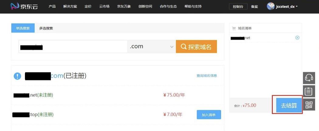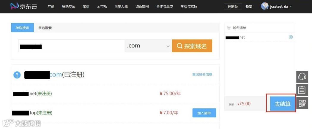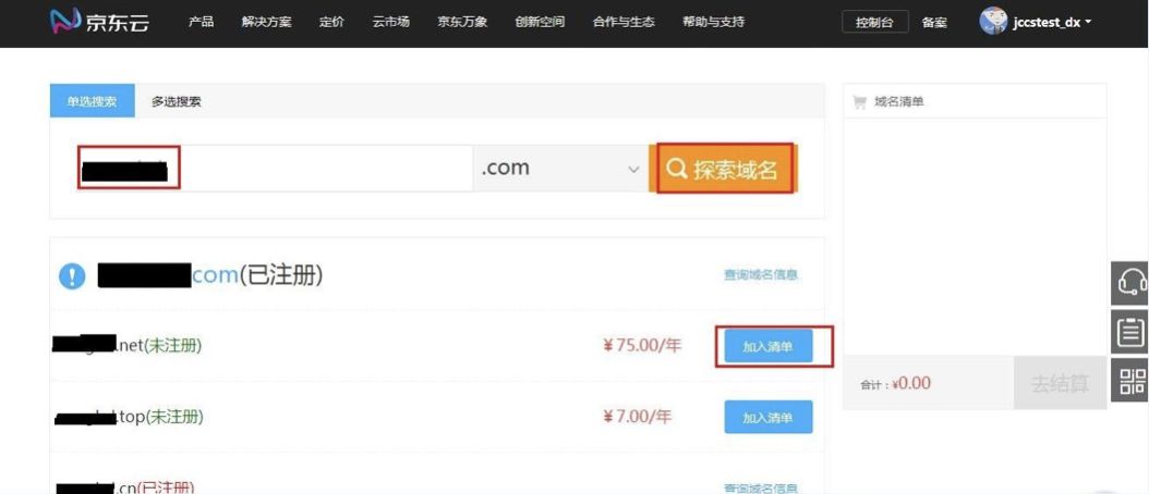 选择域名服务:域名具有全球唯一性,注册之前需要查询您的域名是否可注册。