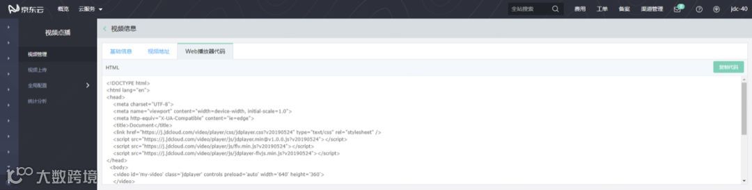 点击web播放器代码,复制代码备用。