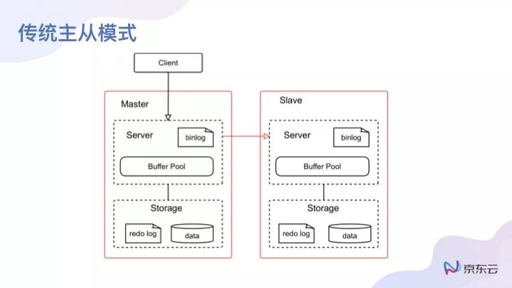 关于主从同步,是用binlog复制的方式,把binlog复制到Slave这边,Slave对binlog重放,然后Slave就有完整数据,这是传统的一个数据库组成模式。