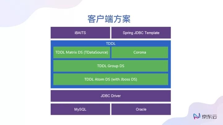 首先客户端方案,可以以友商开源的项目称为TDDL为代表,方案思路较为清晰。如果我们自身需要做一个分布式系统的话,将分布式解决方案放入客户端内,最重要的就是“告诉”客户端SQL语句应该链接到背后哪个数据库,毕竟不同的数据存储在不同的机器当中。对于客户端的方案,比较重要的就是与后端的一些连接,以及如何解析这个SQL语句。