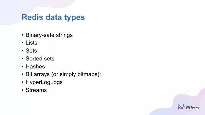 再看一下Redis,可以支持的数据结构有很多,包括Strings、Lists、Sets、Sorted sets、Hashes、Bit arrays,还有HyperLogLogs、streams,streams是5.0,最新的版本甚至可以支持一些时序性的数据。