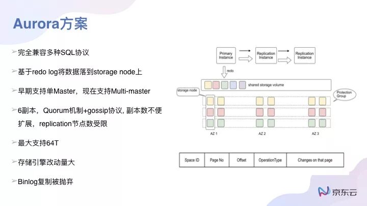 由于链路比较长,而且包括整个EBS的实现中,EBS就是个分布式的快存储,本质上也是多副本的。在多副本的情况下,EBS在远端也要做整个数据的同步,所以Aurora的设计目标就是思考能不能把存储与计算做一些相应的分离。出发点就是数据库存储引擎能不能与分布式块存储融合在一块,融合成一个新的存储引擎。