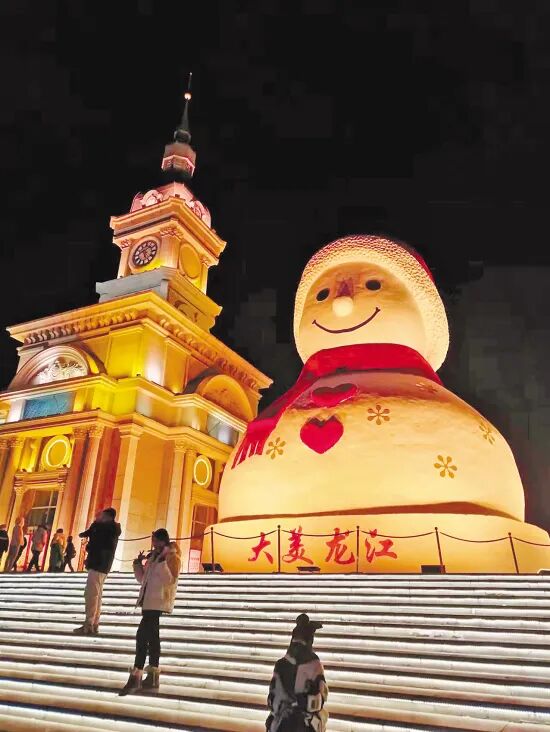 群力音楽公園の「微笑む巨大雪だるま」の人気はすでに広く知られており、トレードマークである赤い帽子とマフラーが、人々に強いインパクトを与えてきた。今年も音楽公園では「微笑む巨大雪だるま」が満を持して登場。雪だるま作りの作業が始まると、ネットユーザーたちの間ではベールに包まれた「全貌」への興味が高まり、完成後には首を長くして待っていた数多くの観光客や市民が一目見ようと足を運んでいる。