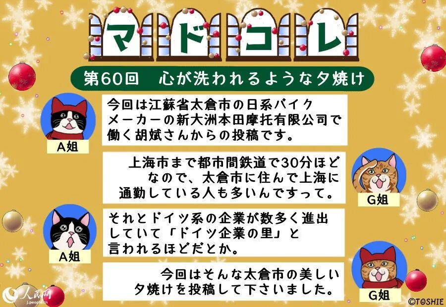 ウチのオフィスの窓からは、こんな風景またはこんなモノが見えると自慢していただく「マドコレ(窓から見た風景コレクション)」コーナー。どこまでも続く青い空や遠くに見える山々といった自然の風景から、オフィス街に建ち並ぶ高層ビルや幹線道路を走る車、庶民の暮らしが垣間見えるローカルな街並み、はたまた移動中の車窓からの眺めなどなど、高さや場所も異なれば、その窓から眺める風景も千差万別。中には仕事の意欲をアップさせてくれる元気の出る光景もあれば、疲れを癒してくれるほっこりした風景も。そんな皆さまからお寄せいただいたマドコレの数々を、毎週火曜日に、人民網日本人編集者のA姐とG姐がコメントしながら、のんびり紹介していきます。