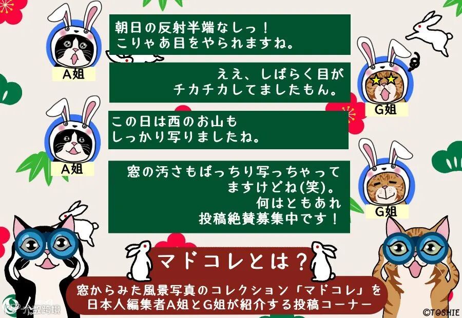 ウチのオフィスの窓からは、こんな風景またはこんなモノが見えると自慢していただく「マドコレ(窓から見た風景コレクション)」コーナー。どこまでも続く青い空や遠くに見える山々といった自然の風景から、オフィス街に建ち並ぶ高層ビルや幹線道路を走る車、庶民の暮らしが垣間見えるローカルな街並み、はたまた移動中の車窓からの眺めなどなど、高さや場所も異なれば、その窓から眺める風景も千差万別。中には仕事の意欲をアップさせてくれる元気の出る光景もあれば、疲れを癒してくれるほっこりした風景も。そんな皆さまからお寄せいただいたマドコレの数々を、毎週火曜日に、人民網日本人編集者のA姐とG姐がコメントしながら、のんびり紹介していきます。