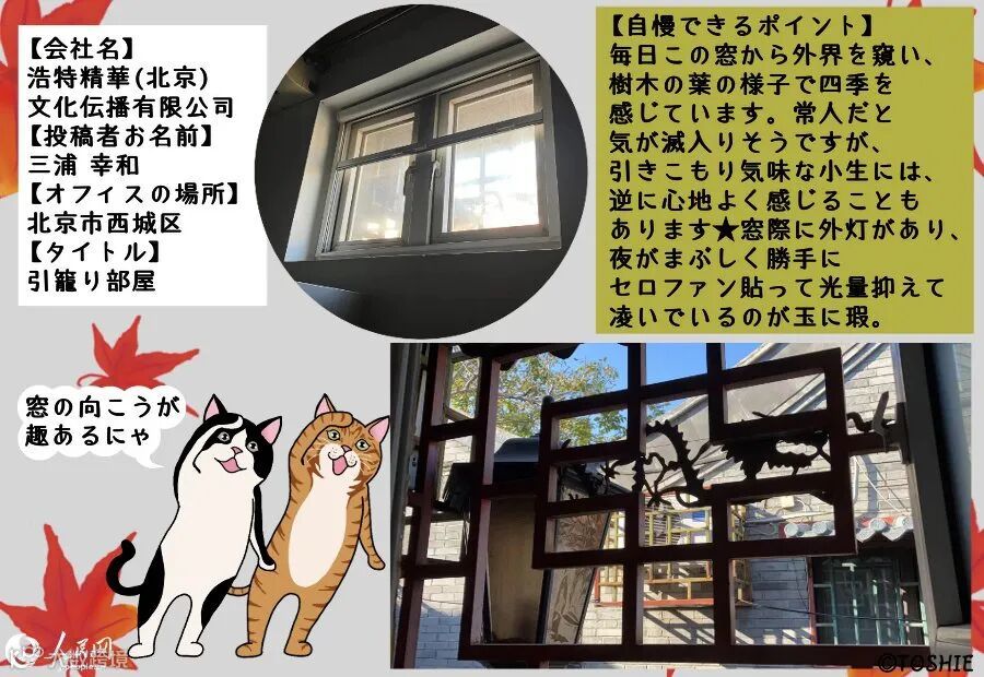人民網では、ウチのオフィスの窓からはこんな風景またはこんなモノが見えるという自慢をしていただく「マドコレ(窓から見た風景コレクション)」を毎週火曜日に掲載中!オフィスの窓からの眺めでもよし、お仕事中の窓からの眺めでもよし、とにかく窓から眺めた様子を写した写真とそれにまつわるエピソードをご投稿ください!
