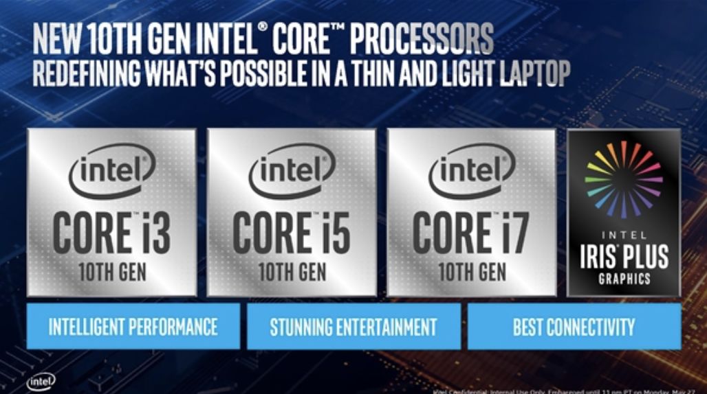 5月28日,台北电脑展,Intel终于发布了万众期待多年的首个10nm工艺产品家族,代号Ice Lake的第十代酷睿移动笔记本处理器,包括酷睿i7、酷睿i5、酷睿i3三大序列和锐炬Iris Plus核芯显卡,而且都更换了新的LOGO标识。