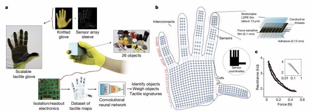 该项研究发表在了《Nature》上,论文为《Learning the signatures of the human grasp using a scalable tactile glove》。该技术可以用来帮助机器人识别和操纵物体,也可以用于假肢设计。