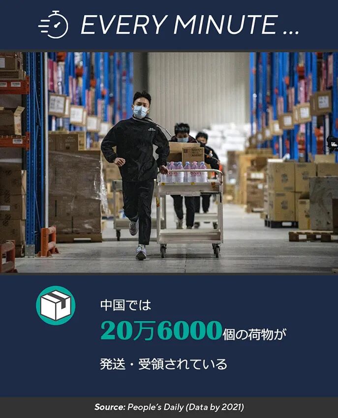 人民网日文版中国外交部の華春瑩外交部長助理は15日午前、「中国では1分ごとに何が起きているか」と題した画像をツイッターに投稿した。同画像は、人々の日常生活の細部に見られる、中国の注目すべき成果を示している。