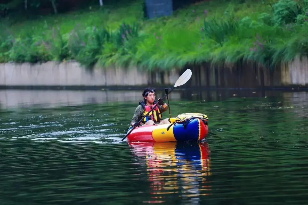 「普段、公共交通機関を利用したとしても、自分で車を運転して行ったとしても、その途中は気持ちが落ち着かない。でも、ゴムボートを漕いで行くと、頭を空っぽにして、その時間を楽しむことができる」と楊さん。