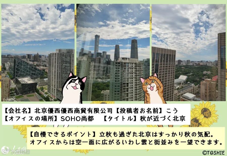 人民網では、ウチのオフィスの窓からはこんな風景またはこんなモノが見えるという自慢をしていただく「マドコレ(窓から見た風景コレクション)」を毎週火曜日に掲載中!オフィスの窓からの眺めでもよし、お仕事中の窓からの眺めでもよし、とにかく窓から眺めた様子を写した写真とそれにまつわるエピソードをご投稿ください!