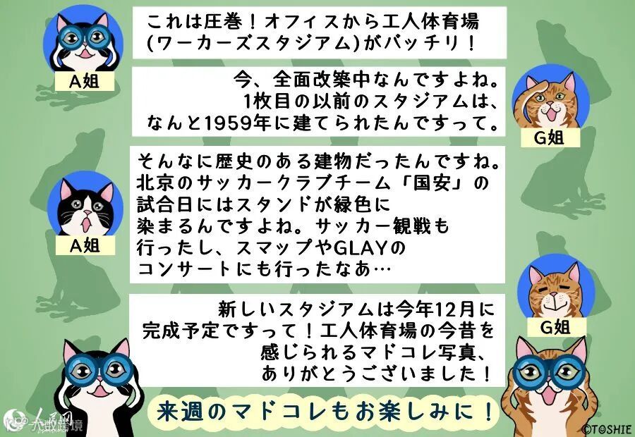 ウチのオフィスの窓からは、こんな風景またはこんなモノが見えると自慢していただく「マドコレ(窓から見た風景コレクション)」コーナー。どこまでも続く青い空や遠くに見える山々といった自然の風景から、オフィス街に建ち並ぶ高層ビルや幹線道路を走る車、庶民の暮らしが垣間見えるローカルな街並み、はたまた移動中の車窓からの眺めなどなど、高さや場所も異なれば、その窓から眺める風景も千差万別。中には仕事の意欲をアップさせてくれる元気の出る光景もあれば、疲れを癒してくれるほっこりした風景も。そんな皆さまからお寄せいただいたマドコレの数々を、毎週火曜日に、人民網日本人編集者のA姐とG姐がコメントしながら、のんびり紹介していきます。