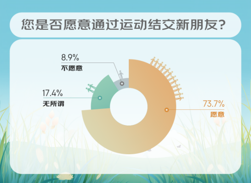 京东消费及产业发展研究院发布的《运动社交消费观察》显示,在35岁以下年轻群体中,有73.7%的受访者表示愿意通过运动结交新朋友,其中性格外向、喜欢社交的“e人”选择愿意的比例达到86.2%,即便是那些性格内向、喜欢独处的“i人”中,该选项的比例也达到了60.8%。