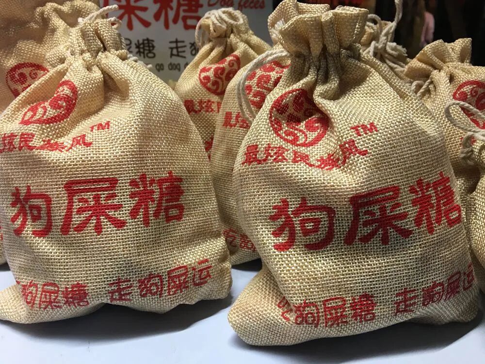 「狗屎飴」(犬の糞飴)は四川省の特産品で、成都市の土産物店ならどこでも売っている。