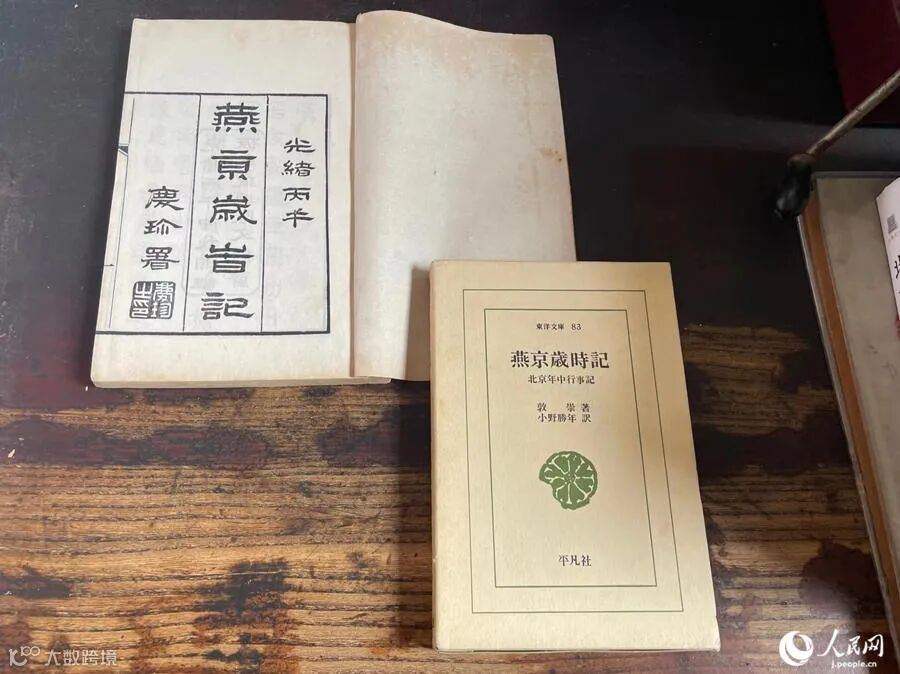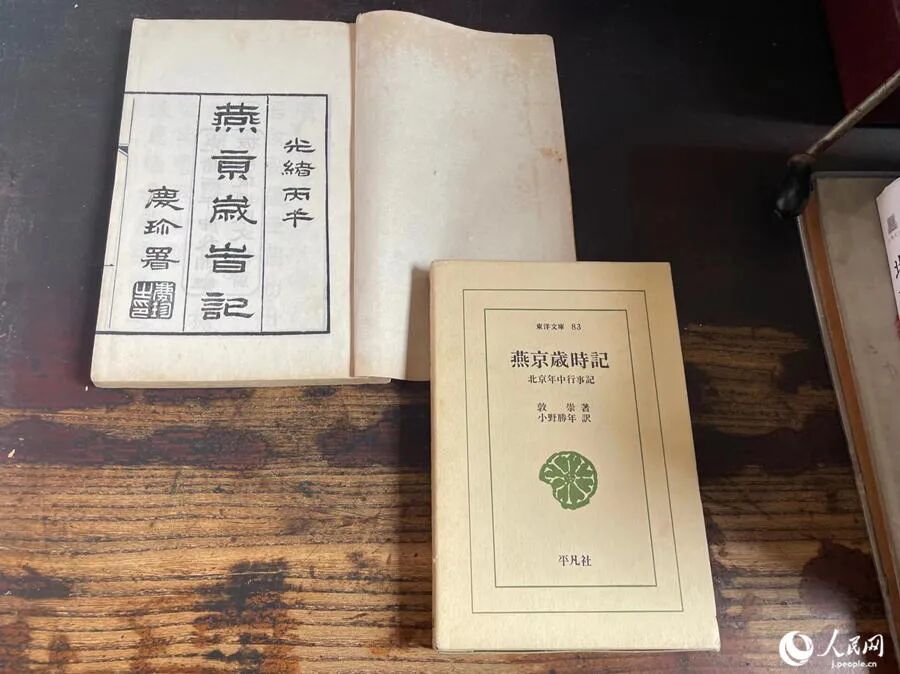 「燕京歳時記」のオリジナル版と日本語版(撮影・勝又あや子)。