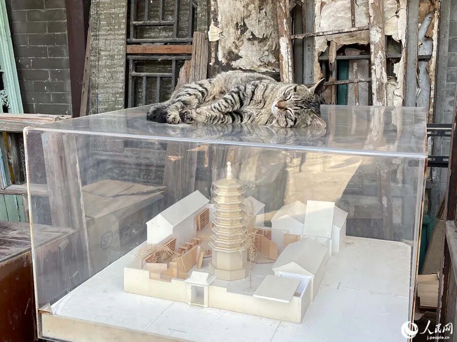 「塔の守り猫」として仕事に余念のない看板猫の「磚磚(ジュワンジュワン)」(撮影・勝又あや子)。