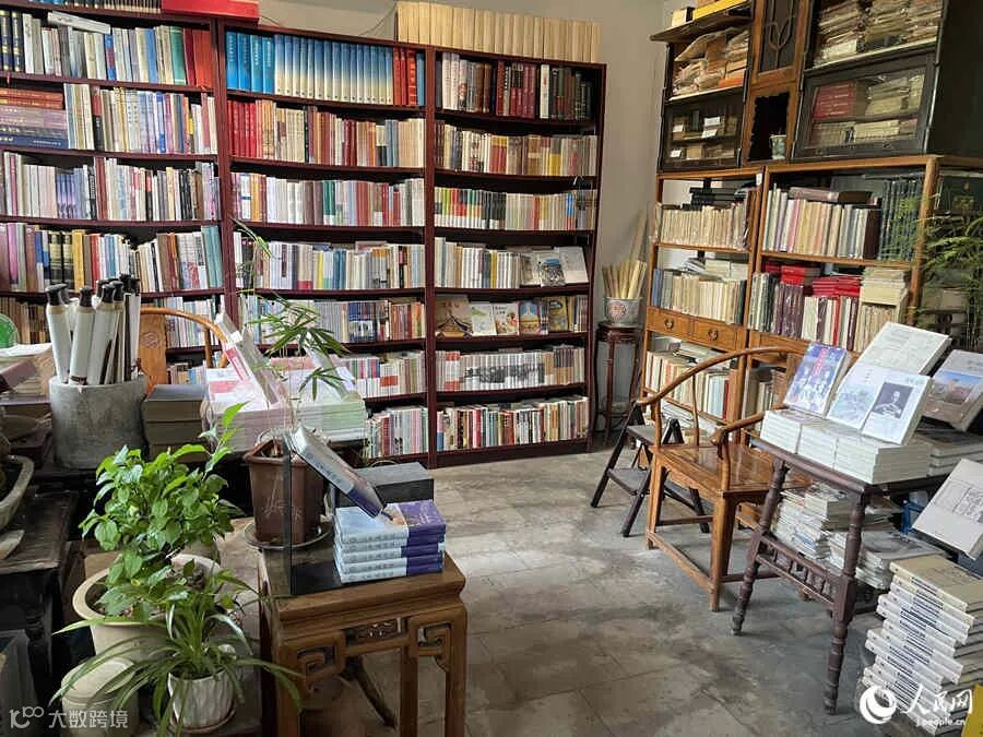 塔を囲むようにした敷地の南側と北側には北京の伝統建築様式である四合院風の建物があり、そこが店舗になっている。書棚には本がぎっしりと並べられ、風情のある家具の上にも平積みされている。