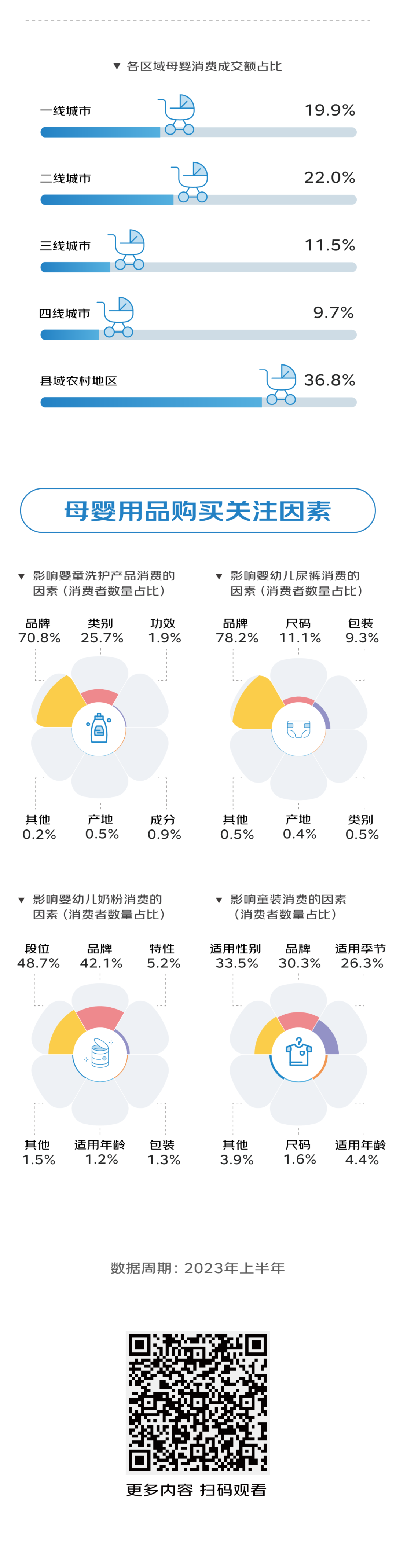 从消费端看,消费者对母婴产品的需求在升级,不再满足于简单的功能,而是希望产品能够更专业、更精细、更贴近实际需求。数据显示,2023年上半年,在母婴产品中,无论是服饰、食品、家居用品还是出行用品,针对不同使用场景和不同阶段成长需求的母婴用品都迎来了高速增长。
