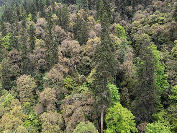 中国科学院植物研究所が明らかにしたところによると、同研究所の郭柯氏のチームがこのほど西蔵(チベット)自治区察隅県で調査を行ったところ、高木が密生する雲南黄果冷杉の原生林を発見した。ドローンを使った複数回の測量によると、同原生林の林冠の高さは70メートル。うち最も高い雲南黄果冷杉は高さが83.2メートル、胸高直径は207センチメートル。その高さはこれまで報道されていたチベットの「不丹松」(76.8メートル)と台湾地区のタイワンスギ(81−82メートル)を上回り、中国で一番高い木の記録を更新した。