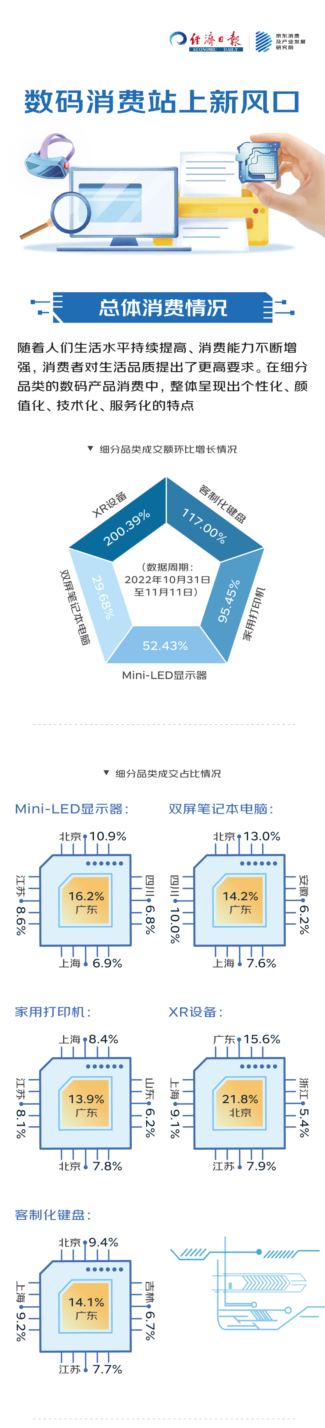消费市场瞬息万变,并深刻影响和重塑着消费需求。特别是在数码消费领域,新产品、新技术、新模式层出不穷,满足了多元化消费需求,引领了消费升级潮流,促进了相关行业高质量发展,带来了更多发展机遇。