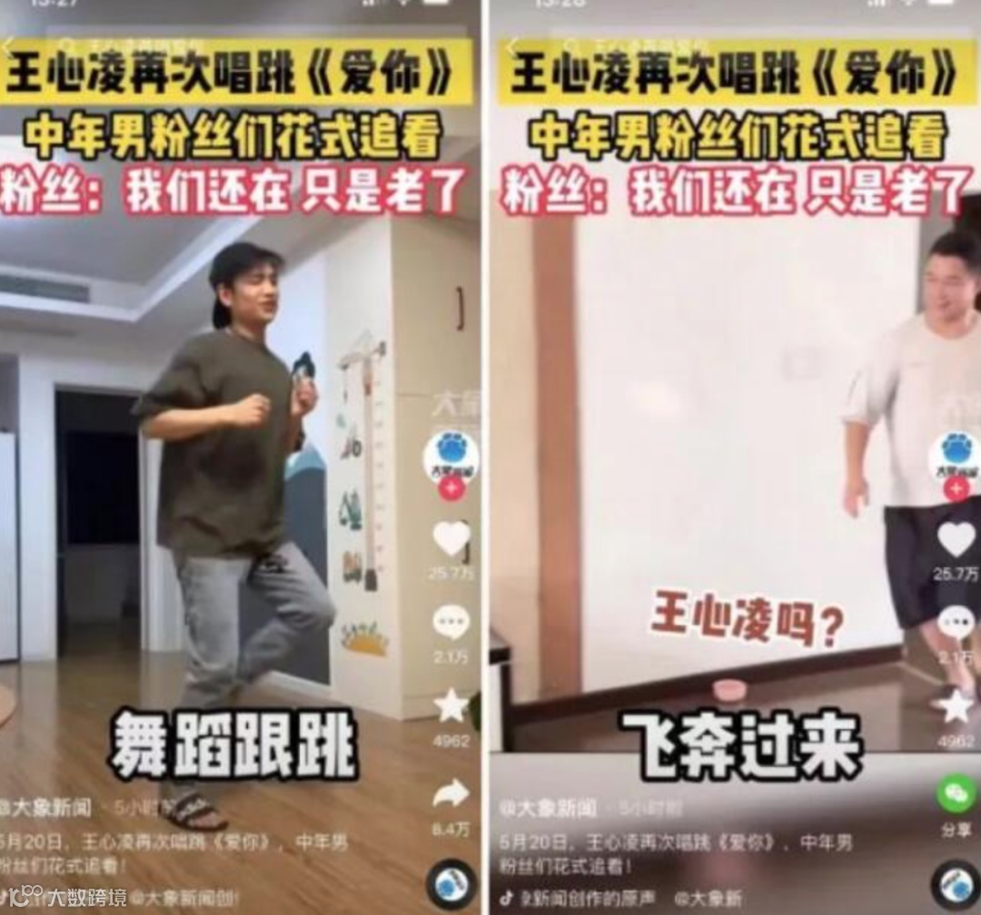 ショート動画プラットフォームでは、たくさんのネットユーザーが王心凌と一緒に歌ったりジャンプしたりする男性ファンの動画を再生し、「私たちは健在、年は取ったけど」などと続々コメントを寄せる。またネットでは中年の男性ファンが自分のことを「王心凌キッズ」などと呼んでいる。