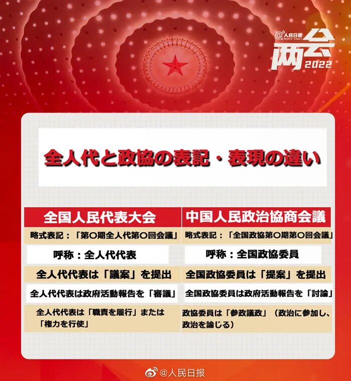 全人代と政協の表記・表現の違い