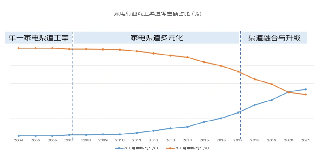 (图:近年来家电市场线上渠道占比持续提升,数据来源:赛迪研究院)
