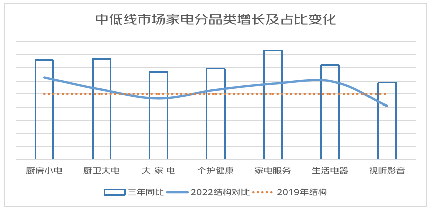 (上图:以2019年品类消费金额占比为基础值,可见2022年家电的品类结构发生变化)