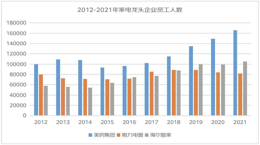 (图:近十年家电行业龙头企业员工人数保持稳定,数据来源:公司官网及财报)
