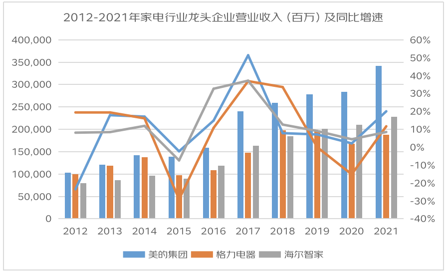 (图:近十年家电行业龙头企业营业收入(百万)持续提升,数据来源:公司财报)