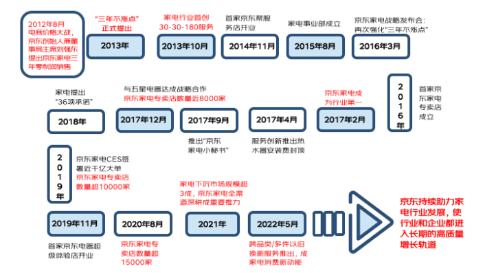 下图为京东家电十年聚力行业、共扶发展的大事件表: