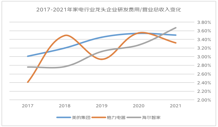 (图:近十年家电行业龙头企业研发费用占比持续提升,数据来源:公司财报)
