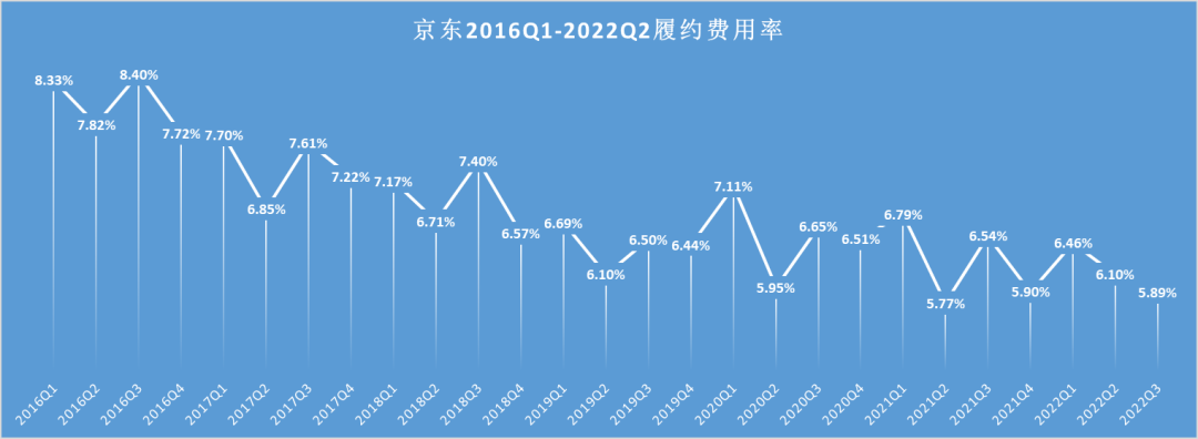 从京东集团2016年以来的财报数据也可以看出,履约费用持续下降,意味着京东物流成本的下降与效率的提升。