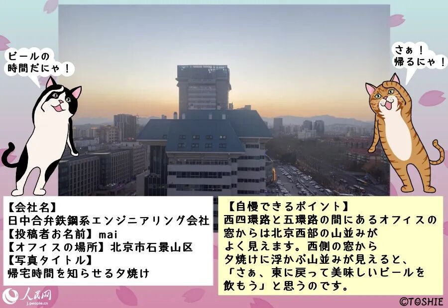 ウチのオフィスの窓からは、こんな風景またはこんなモノが見えると自慢していただく「マドコレ(窓から見た風景コレクション)」コーナー。どこまでも続く青い空や遠くに見える山々といった自然の風景から、オフィス街に建ち並ぶ高層ビルや幹線道路を走る車、庶民の暮らしが垣間見えるローカルな街並み、はたまた移動中の車窓からの眺めなどなど、高さや場所も異なれば、その窓から眺める風景も千差万別。中には仕事の意欲をアップさせてくれる元気の出る光景もあれば、疲れを癒してくれるほっこりした風景も。そんな皆さまからお寄せいただいたマドコレの数々を、毎週火曜日に、人民網日本人編集者のA姐とG姐がコメントしながら、のんびり紹介していきます。