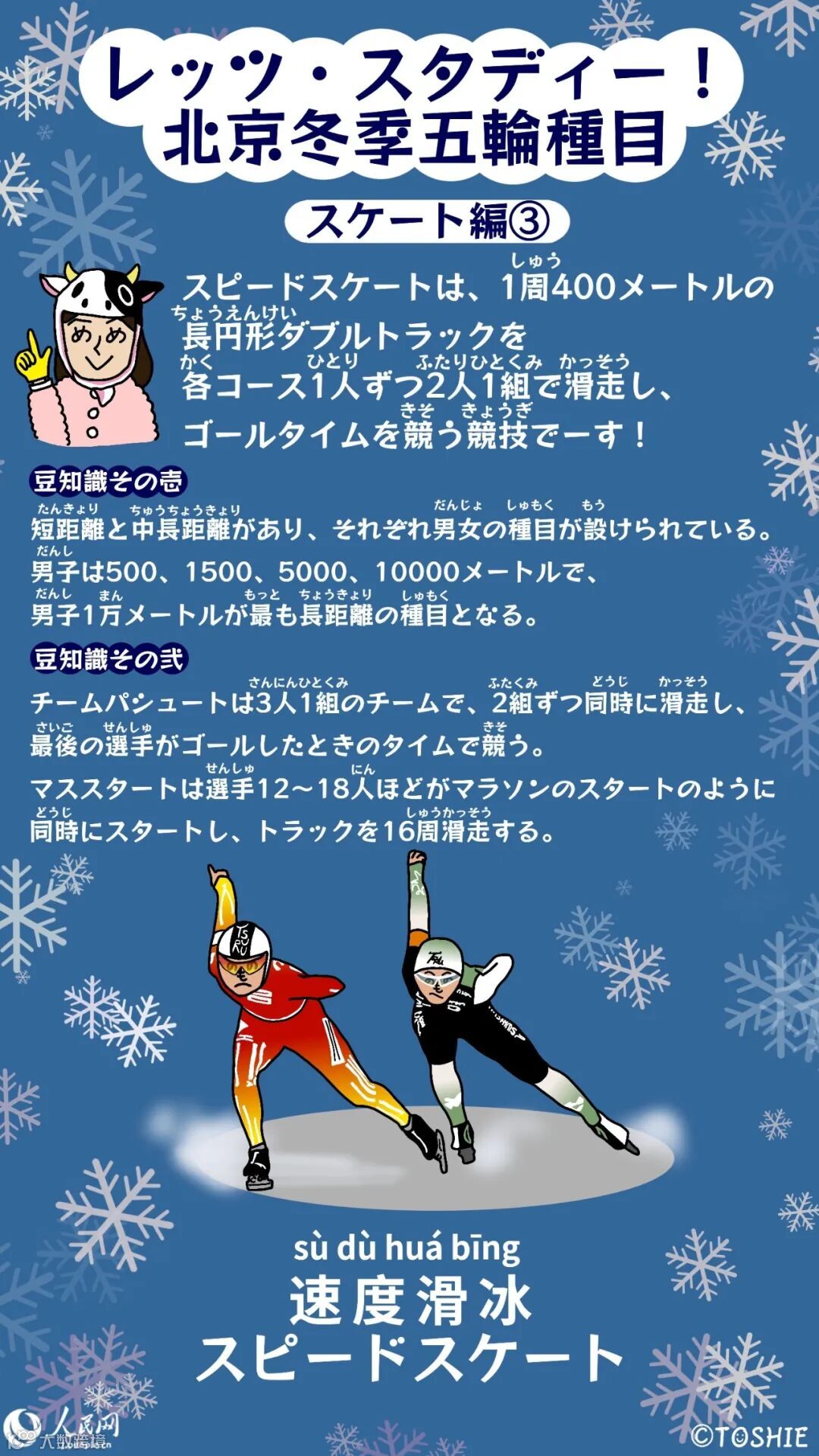 2022年2月4日から中国の北京で開催される北京冬季五輪。その開会に先立ち、人民網では冬季五輪の計7競技と15種別を「イラストで知ろう!イマドキ中国」でおなじみのキャラたちが中国語と日本語で紹介。普段はあまり触れることのないこうした競技名などを観戦前に予習していこう!