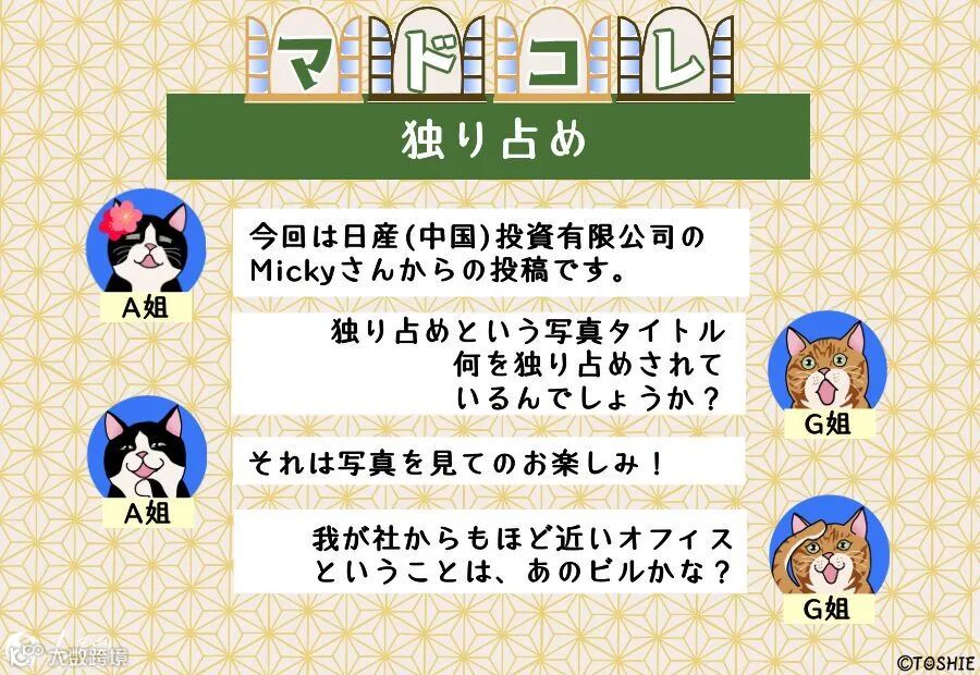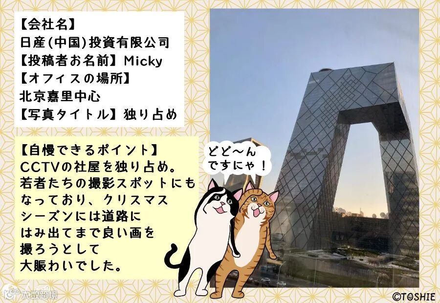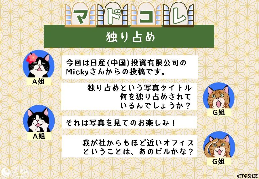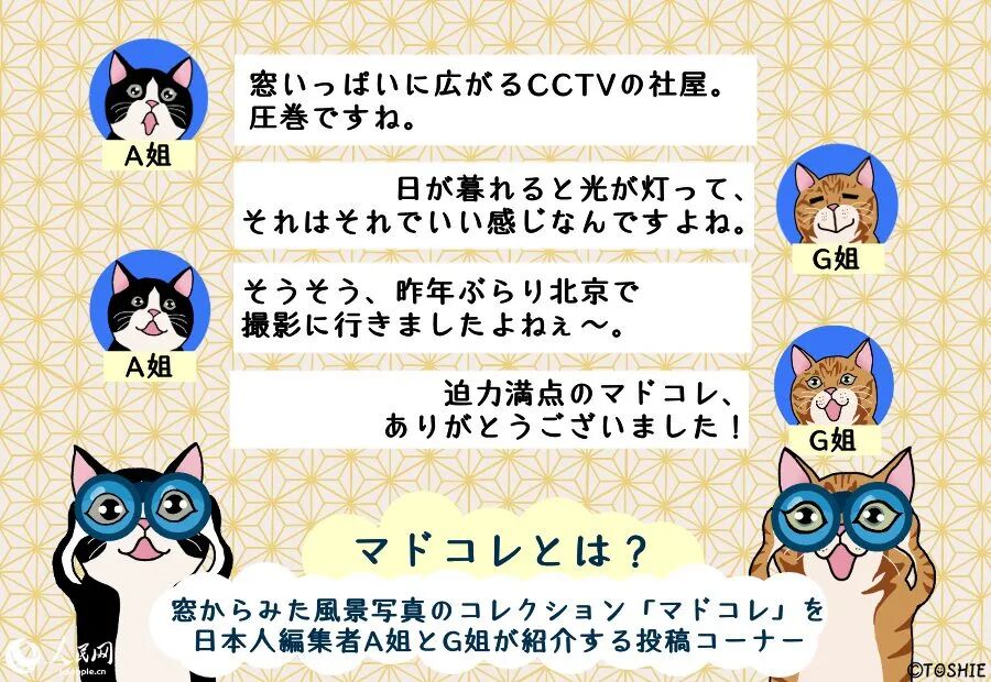 ウチのオフィスの窓からは、こんな風景またはこんなモノが見えると自慢していただく「マドコレ(窓から見た風景コレクション)」コーナー。どこまでも続く青い空や遠くに見える山々といった自然の風景から、オフィス街に建ち並ぶ高層ビルや幹線道路を走る車、庶民の暮らしが垣間見えるローカルな街並み、はたまた移動中の車窓からの眺めなどなど、高さや場所も異なれば、その窓から眺める風景も千差万別。中には仕事の意欲をアップさせてくれる元気の出る光景もあれば、疲れを癒してくれるほっこりした風景も。そんな皆さまからお寄せいただいたマドコレの数々を、毎週火曜日に、人民網日本人編集者のA姐とG姐がコメントしながら、のんびり紹介していきます。