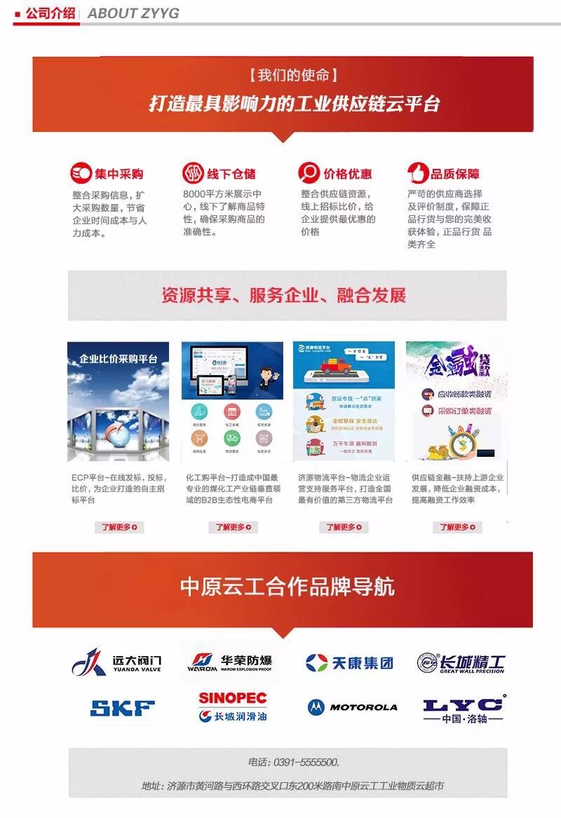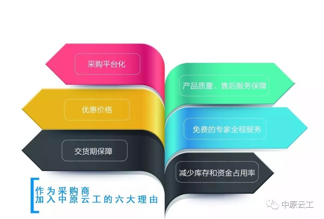 河南中原云工有限责任公司,是我市九家工业企业为优化资源配置、降低生产成本、采购成本、物流成本、提高采购效率和质量而共同出资成立的一家工业供应链云平台。我们通过互联网、大数据、云计算等技术,优化企业备品备件、原料辅料等通用物资的采购流程,达到降本增效的目的,构建“中原云工”特有的“云”服务体系。