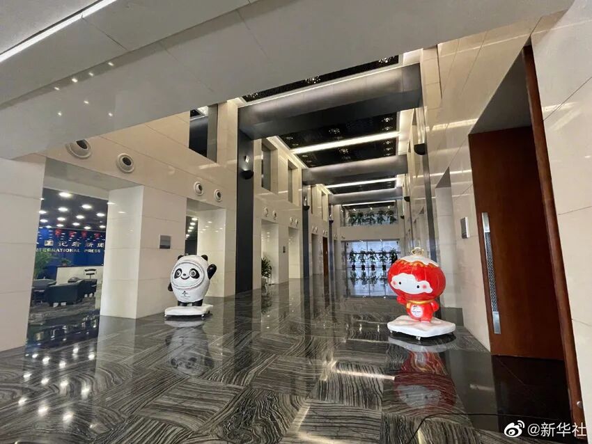 2月15日,外交部举行例行记者会的新闻发布厅——蓝厅门口,迎来了两位特殊的“客人”:北京2022年冬奥会和冬残奥会吉祥物“冰墩墩”“雪容融”。