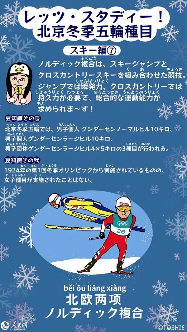 2022年2月4日から中国の北京で開催される北京冬季五輪。その開会に先立ち、人民網では冬季五輪の計7競技と15種別を「イラストで知ろう!イマドキ中国」でおなじみのキャラたちが中国語と日本語で紹介。普段はあまり触れることのないこうした競技名などを観戦前に予習していこう!
