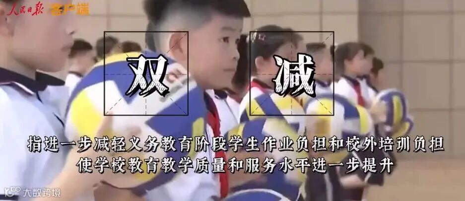 義務教育段階にある子供たちの宿題と学習塾の負担をさらに軽減することを指す。その目標は、学校教育における授業の質とサービスの水準をさらに向上させ、より合理的な宿題を出し、放課後の学童保育サービスが子供たちのニーズを満たし、学校でよりよい学習が行えるように導き、学習塾などにおける教育内容を全面的に規範化させることとなっている。
