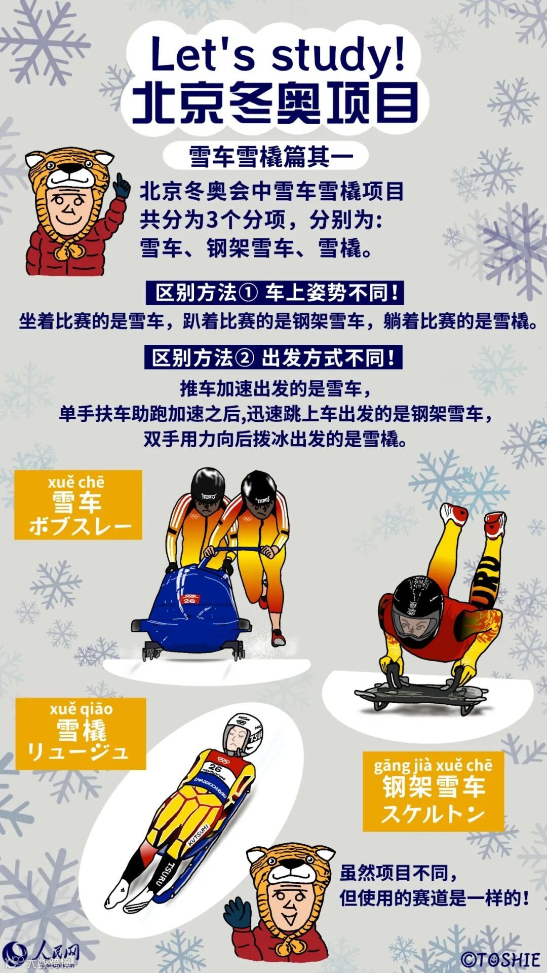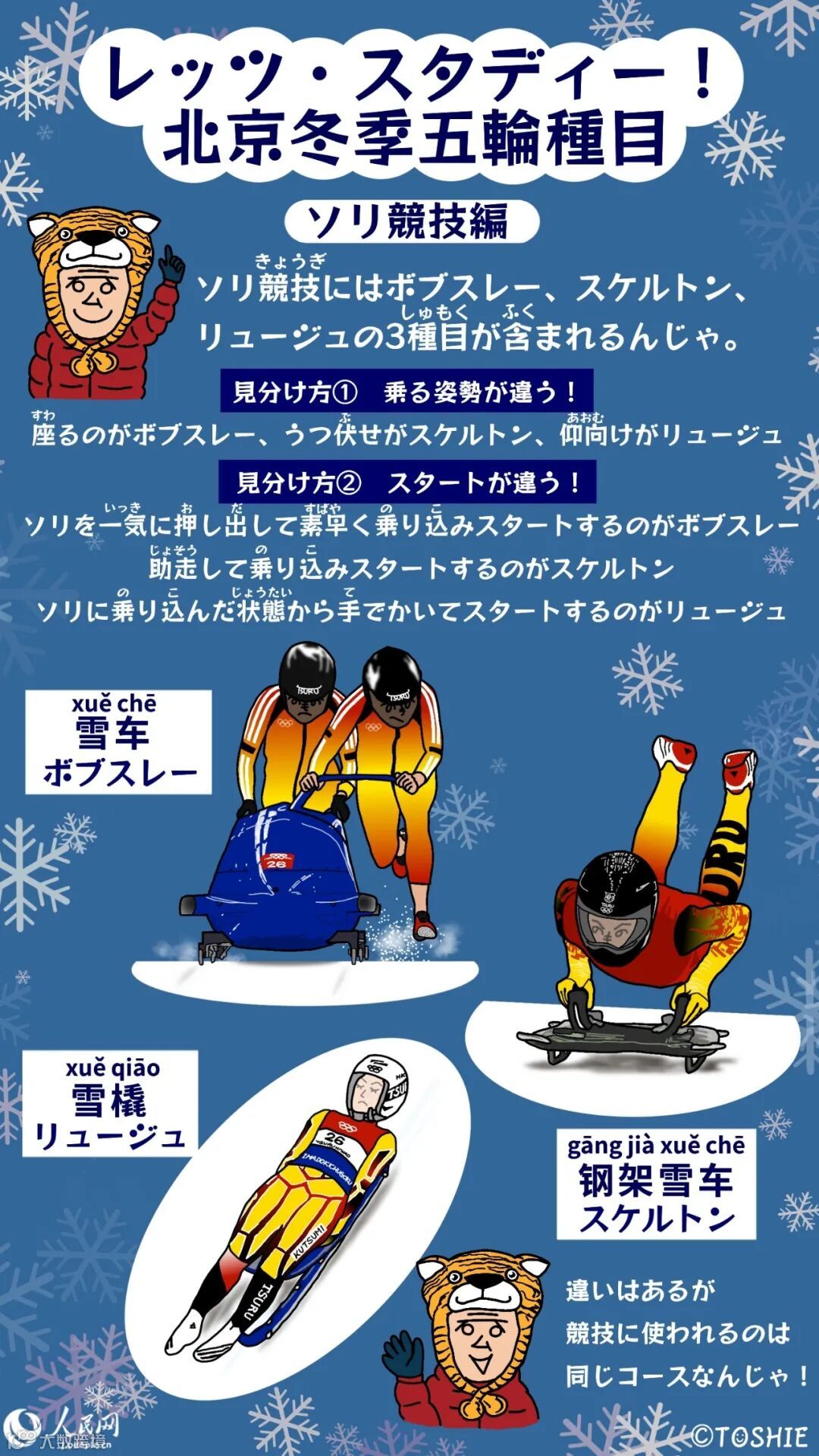 2022年2月4日から中国の北京で開催される北京冬季五輪。その開会に先立ち、人民網では冬季五輪の計7競技と15種別を「イラストで知ろう!イマドキ中国」でおなじみのキャラたちが中国語と日本語で紹介。普段はあまり触れることのないこうした競技名などを観戦前に予習していこう!