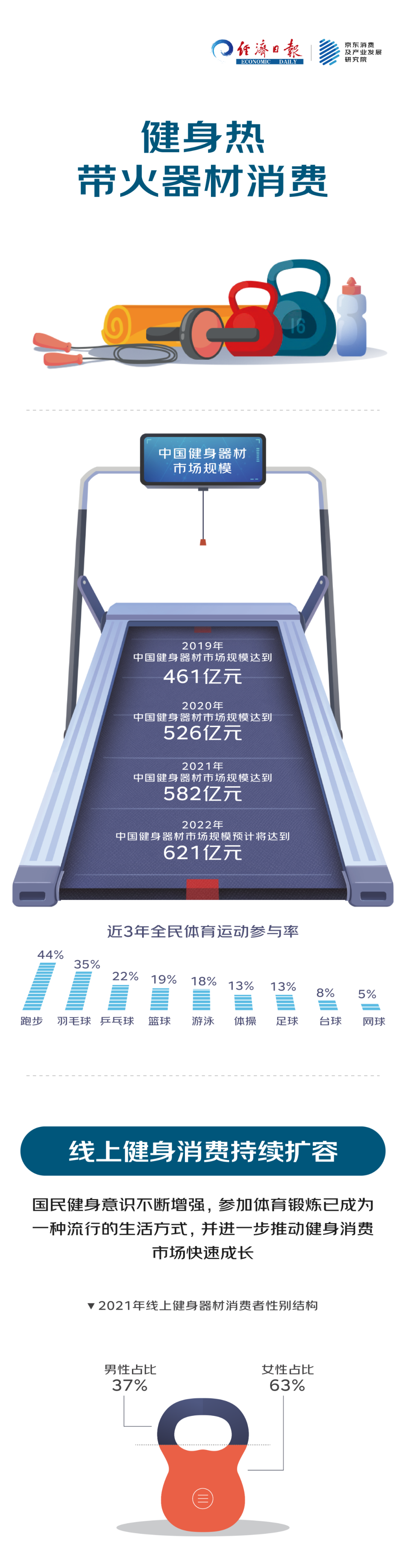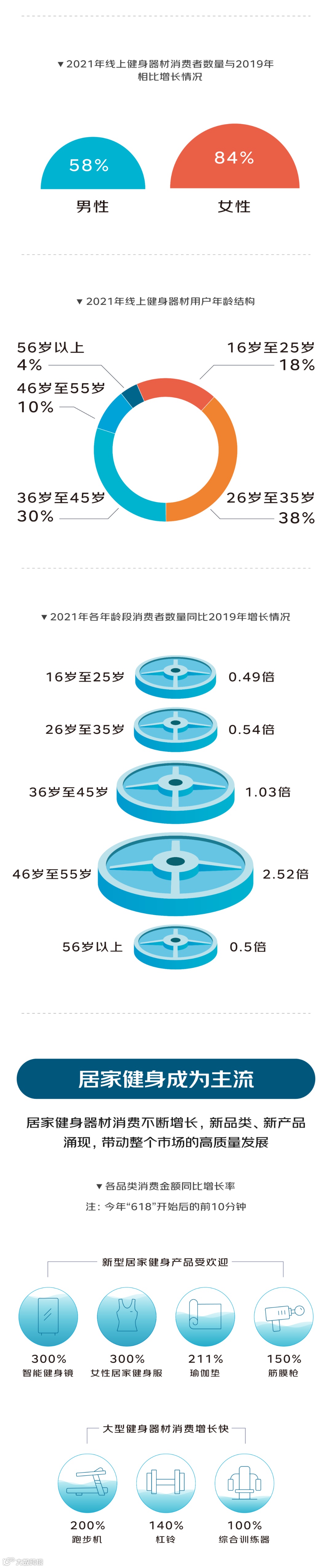 随着全民健身上升为国家战略,人们的生活观念持续转变,健身氛围日益浓厚,健身人群快速增长。特别是居家健身已经成为一种潮流生活方式,线上健身生态圈不断扩大,为运动健身器材市场实现跨越式发展带来新机遇。