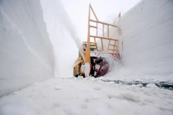 2019年3月,日本青森为国道除雪,出现7米高壮观雪墙(图片来源:朝日新闻网站)