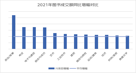 分类目来看,2021年增幅较快(成交额,下同)的图书主要有以下分类: