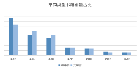 相较于其他职业,金融从业年轻人更加关注碳中和与元宇宙。北京市的年轻人买走了27%的碳中和相关书籍和23%的元宇宙相关书籍。无论是碳中和书籍还是元宇宙书籍,华北地区的购买量都牢牢占据榜首。除此之外,华东地区更关注碳中和,华东和华南地区更关注元宇宙。